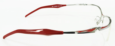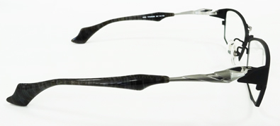 | フロント上部にはゼットンの角を表現しています。 | フロントとテンプルを繋ぐ部品にはβチタンを使用し、バネ性を効かせ、かけ心地の良さも実現。 |
