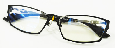 | フロント :ウルトラマンの目をイメージしたデザイン。ブルーライトカットレンズを標準装備しています。 | ウルトラマンの宇宙人感を出す為に、正面・側面は、出来るだけシンプルにしました。素材は軽くてさびにくいチタンを使用。 |