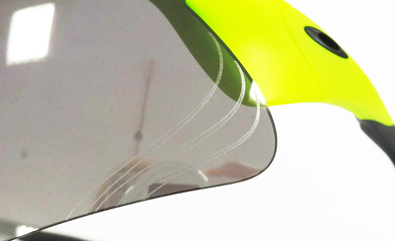 | ↓スリーポイントフィットで長時間でも快適な装用感を演出 | ↓お顔の形や掛けたいポジションに合わせてユーザー自身で掛け心地をカスタマイズ出来るアジャスタブルノーズパッド | ||||||