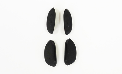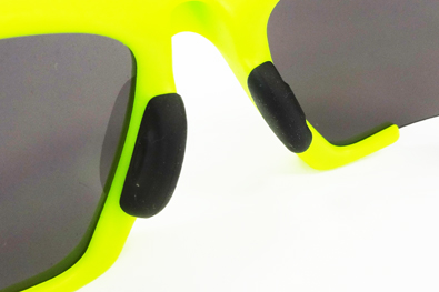 | ↓透明シリコン製イヤーソックが、テンプル後方のO-Matterスパイクディテールを包み込み、優れたフィット感とホールド性を実現 | ↓汗をかくことでグリップ力が高まり、ズレることなくフレームをしっかりと固定し、最大限の快適性を提供するグルーバル&アジアフィットの2種類のUnobtanium製ノーズパッド。 | ||||||
