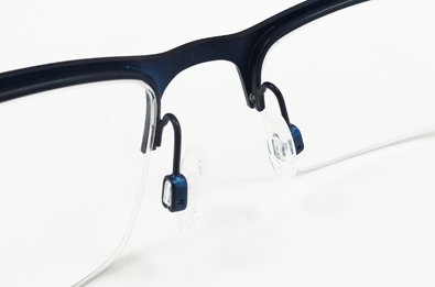 | ●超軽量ステンレスフレーム素材 | ●フィット調整ができるグースネック構造のクリア・グリップフィットノーズパッド |