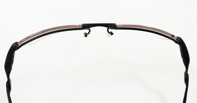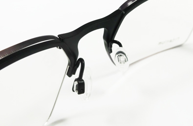 | ↓スプリングヒンジ内蔵 | ↓セミリムレスフェイクリム |