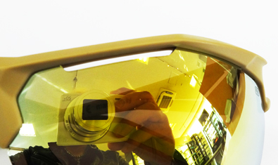 | ↓まるで一眼サングラスのように広い視界と、お顔を包み込む形状により高い保護性を確保 | ↓こもった空気を効率的に逃がし レンズの曇りを防止するベントコントローラー |