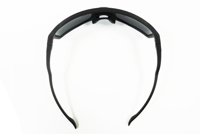 | ↓極限まで無駄を省いたシンプル設計 | ↓レンズの縦幅が60mmと、前傾になったときも 上部の視界をしっかり確保できる構造 |