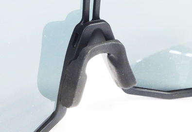 | ↓左右一体型でスッキリとした見た目と ズレにくさを高めた独自のエストラマーノーズパッド |