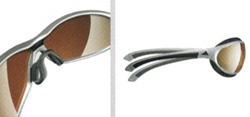 ●Ergo-Grip Nose ・とても鼻あたりがよく滑りにくいノーズパットを採用。 Tranction Grip(スポーツアイウェアにも採用)と同じ素材を採用。 ・2段階で調節可能(高さ調節機能:内⇔外) ・上下で動くフレキシブル設計。 |