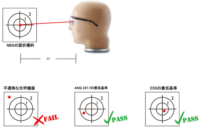 ![]() ESS製品は各規格のテストで全て合格しております。 National Stock Numbers(NSN)も全て取得しており、NATOのStock Numbersにも準じております。 ANSI Z87.1-2003+ Impact requirements of US MIL-PRF-31013 US Federal OSHA standards CE EN 166(F) US Army,USMC,& UK MOD Authorized ESS Eye Safety Systems Inc