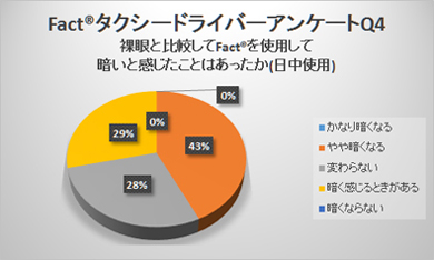 Fact®レンズ・タクシードライバーアンケート結果 Fact®はその見え方等を認めていただき、金栄堂が所在する山形県長井市の全タクシー会社に採用されております。 自動車運転のプロであるタクシードライバーの皆様に実際にFact®をお使いいただき、 その使用感をアンケート形式でお答え頂きました(実施期間2015年4月~10月までの半年間)。 ご協力いただきました長井市内タクシー会社の皆様に心から御礼申し上げます。 ■全面協力長井市内タクシー会社様(順不同) ・(株)中央タクシー 様 ・長井交通株式会社 様 ・(株)白鷹タクシー 様 |
