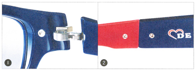| ↓割智フロント構造でレンズへの負荷を軽減 | ↓逆Rヒンジで頭部への締め付けなく快適にフィット |