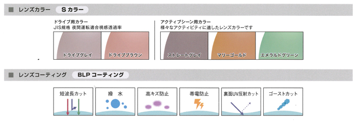 999'9 feelsun LENS SCOLOR(フォーナインズ・フィールサン エスカラー遠近両用度付きレンズ) ![]() 999'9 feelsun SCOLORはアクティブなシーンに合わせて新しい提案をする 999'9とNIKON(ニコン)が共同開発したスペシャルカラー度付きレンズです。 ■ドライブ用カラー:ドライブグレイ/ドライブブラウン ■アクティブシーン用カラー:ストレートグレイ/マリーゴールド/エメラルドグリーン |