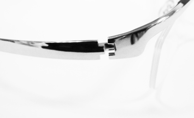 | 新設計のフロント構造を用いた、メタルブロウ。眼鏡使用時の負荷を吸収するポイントをフロントに置き、その中で力を解消できるようにしています。掛けたときにブロウパーツがフレキシブルに反応。頭部を包み込むテンプル形状と連動して掛ける際の可動域を大きく取ることで、掛ける人に最適かつ安定したフレームバランスを作り、ここちよいホールド感を保ちます。フロントの最小限の動きでフレキシブルな環境を作ることができるため、各パーツにかかる負担が少なく、破損に対しての機能性も高い構造です。さらに、掛けたときにブロウパーツが動くことで、フロントに程よい立体感を与えます。ブリッジとブロウラインの関係性に変化が生まれ、掛ける人の表情をより豊かにします。 | フォーナインズの機能パーツの一つである、バランサーを新たに設計。テンプル内側に収めることにより、フロントの連動性を高めました。フロントで負荷を解消する中でこぼれた僅かな力を、最終的にはこのバランサーで解消。さらに立体的なブロウラインからバランサーを経由してつながる、美しいサイドの表情がフォーナインズらしさを演出します。 |