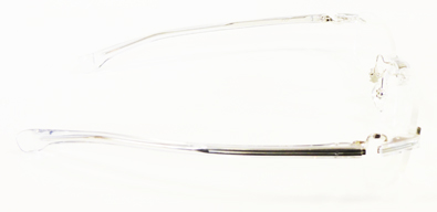 | 逆Rヒンジは、フロントに対する負荷を最小限にするため、長さ、幅、厚みをツーポイントに適したバランスで設計しました。ツーポイントフレームにおいて、しなやかに、より効果的に機能します。 | 智からテンプルへとつながるサイドの印象は、すっきりとしたフロントとは対照的にプラスチックの存在感が際立ちます。クリア系の生地を用い、メタルパーツに施したラインがサイドの表情を演出します。 |