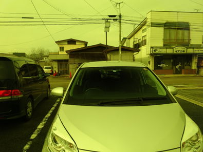 | 裸眼の状態(車・路上) | ネオブライトイエローで見た見え方(車・路上) |