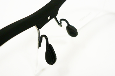 | ↓様々なお顔立ちの方にもしっかりフィットするノーズパッド | ↓フレキシブルに動く弾力性のあるテンプル |