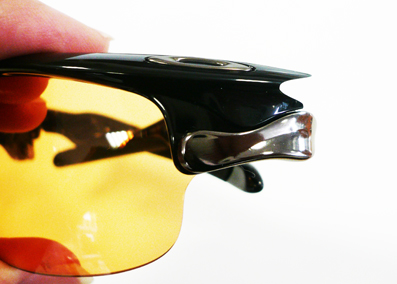 | ↑OAKLEY FASTJACKETには新たなギミックが搭載 | ↑新スウィッチロックを裏面から見た状態 | |