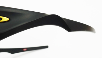 | ↓ダイナミックなスタイリング:ハイラップ構造と流れるようなコンター(曲線的造形)により、動きのある印象を演出しながらも、親しみやすく汎用性の高いデザインに仕上げている。 | O-Matterフレーム:OAKLEYの射出成型によるサーモプラスチック素材「O-Matter」は、従来のアセテート素材に比べて強度と柔軟性が向上しています。時間の経過による変形やズレに強く、長期間安定した使用に耐えるフレーム素材です。 | ||||