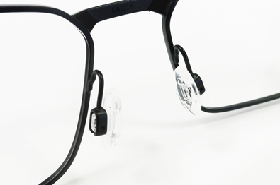 | ●軽量C-5合金+高弾性O-Matter素材 | ●フィット調整ができるグースネック構造のクリア・グリップフィットノーズパッド |