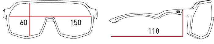![]() BASE 6 、重量:30グラム レンズ幅:150mm、レンズ縦:60mm、テンプル長:118mm |