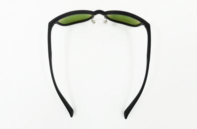 | ↓メイドインジャパンのオーバーグラス | ↓掛けた姿もより自然でスタイリッシュに見えるデザイン | ||