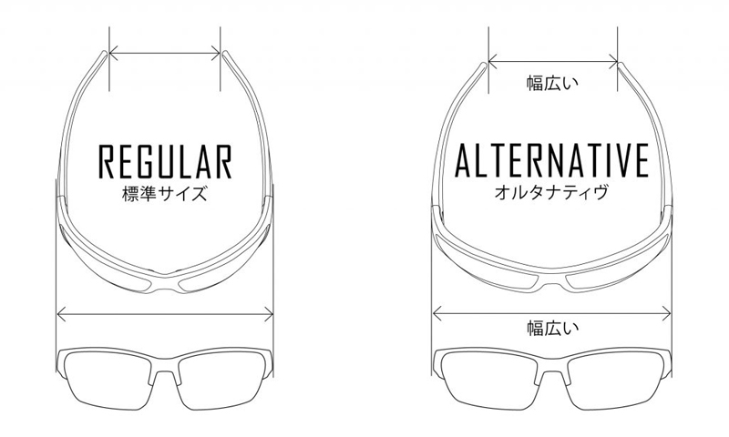 | WX SAINT – ALTERNATIVE -は、REGULAR:標準サイズのWX SAINTをベースに、より日本人の顔にフィットするようフレーム幅を広く設計したモデルです。 ※WX SAINT – ALTERNATIVE -専用レンズ/フレーム設計です。 |