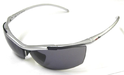 このように非常にレンズに柔軟性があり、指でも簡単に曲げられます。逆に言えば非常に安全性が高く、また割れないというのはもちろんですが、顔に強い衝撃があった場合に顔に傷を負う可能性が極めて低くなります。また、従来まであったポリカーボネートという素材とほぼ同等の強度をもちながら、歪みの少ない画期的なレンズです。軽さも水に浮く位の軽さで重量による負担もかなり軽減するまさに画期的な新構造のサングラスです!